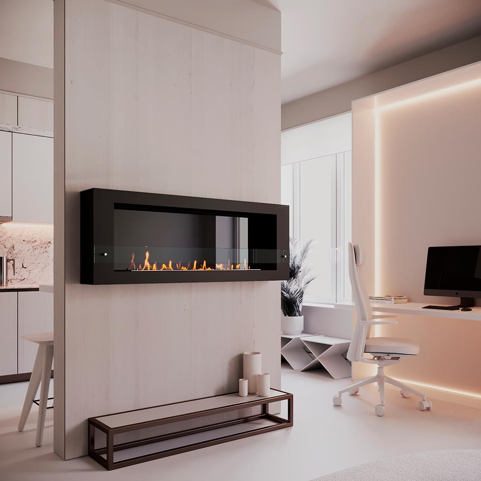 Биокамин SteelHeat WALL LONG 1500 черный, стекло