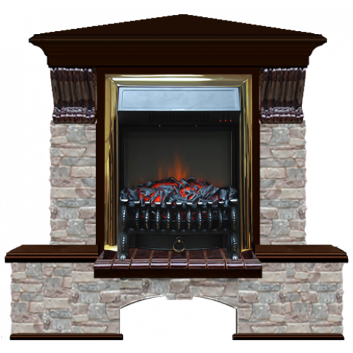 Каминокомплект Glenrich Бостон К Грот цветной угловой (дуб)+Fobos Brass